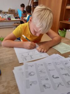 Es ist geschafft! Die Kinder der 1. Klasse haben alle Buchstaben gelernt. Das wurde mit einem kleinen Buchstabenfest gefeiert. An verschiedenen Stationen bastelten, zeichneten, schrieben, bauten und turnten die Kinder alle Buchstaben. Zum Schluss gab es auch noch gebackene Buchstaben zum Essen.