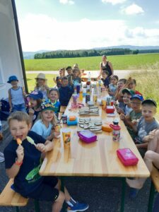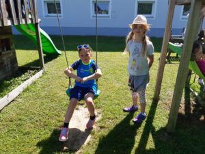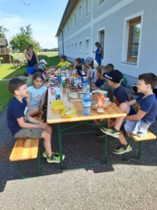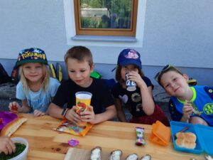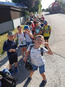 Im Juni wanderte die 1. Klasse von der Schule weg Richtung Aichberg. Bei Lorenz zu Hause durften wir eine Pause einlegen. Dort aßen wir unsere Jause und spielten im Garten. Am Ende bekamen wir noch ein leckeres Eis. Dann marschierten wir wieder zurück zur Schule. Vielen Dank an Frau König und Frau Oberaigner für die leckere Bewirtung.