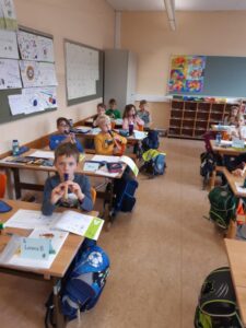 Wir freuen uns sehr, dass wir auch in diesem Schuljahr wieder eine Flötenklasse haben. Christina Traubenek, von der Musikschule Haidershofen, kommt jeden Mittwoch für eine Stunde in die 2. Klasse.