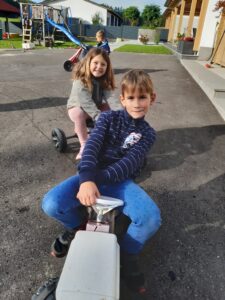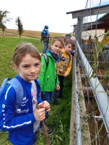 An einem wunderschönen Herbsttag wanderten wir zur Familie Brandtner nach Tröstlberg. Auf unserem Weg durften wir am Bauernhof Ellinger Ferkel anschauen. Anschließend legten wir eine Pause bei Familie Buchner ein. Am Ziel angekommen, wurden wir mit einer köstlichen Jause verwöhnt. Zu Fuß ging es dann wieder zurück zur Schule.