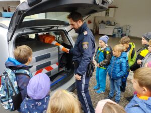 Im September wanderte die 3. Klasse nach Haidershofen und durfte dort die Polizeistation besichtigen. Kugelsichere Westen, Handschellen und die Gefängniszelle wurden mit Begeisterung ausprobiert. Heim ging es dann mit dem Bus.