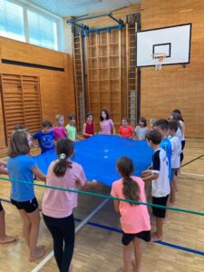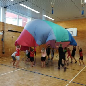 Die 3. und 4. Klasse nehmen heuer an dem Projekt „Bewegte Klasse“ teil. Wie man sieht, macht es ihnen großen Spaß.