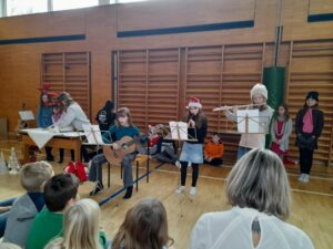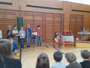 Nach zwei Jahren Pause fand heuer wieder unsere Weihnachtsfeier gemeinsam mit den Eltern statt. Die Kinder boten ein abwechslungsreiches Programm: Lieder, Gedichte, Flötenstück und ein englisches Minimusical. Anschließend verabschiedete uns Frau Direktor in die wohlverdienten Weihnachtsferien.