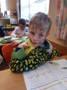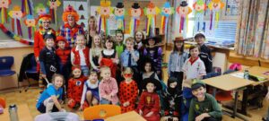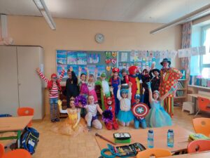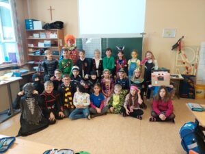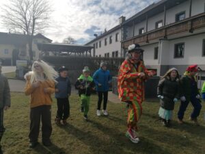 Achtung! Die Narren sind los! Bunt und ausgelassen ging es am Faschingsdienstag in unserer Schule zu. Viele verschiedene Kostüme konnte man sehen. In der Pause überraschte uns der Elternverein mit einem leckeren Krapfen. Vielen Dank dafür! Anschließend zogen wir mit lauter Musik durch den Ort und tanzten neben dem Ortsplatz.