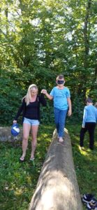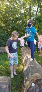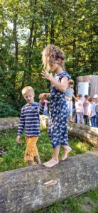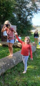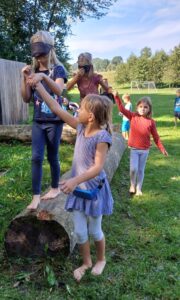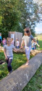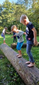 Die Kinder der 2. Klasse machen spannende Balancier-Übungen am Sportplatz.