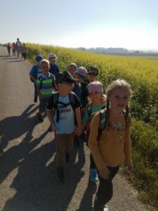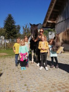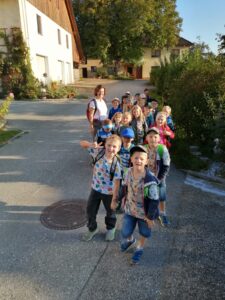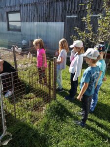 Die 1. Klasse wanderte bei schönstem Herbstwetter zur Familie Mayrhofer. Die Kinder hatten viel Freude beim Spielen im Wald und im Garten. Highlight war auch der Rundgang und der Kontakt zu den Tieren, die bei Familie Mayrhofer wohnen.