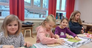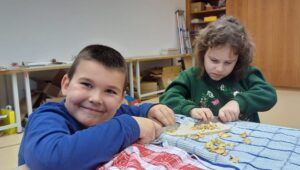 Die Kinder der 2. Klasse bereiten ihren eigenen Müsliriegel zu.