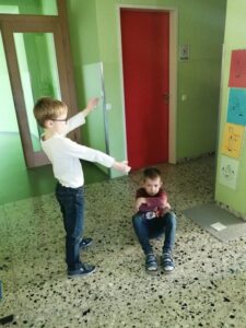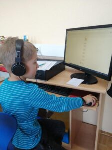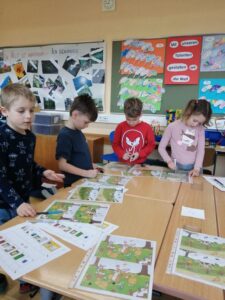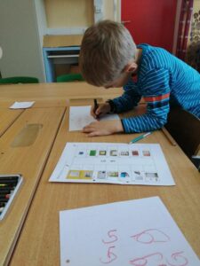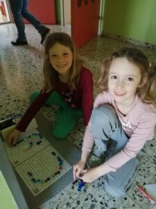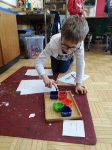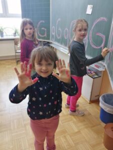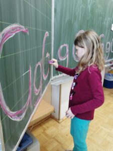 Anhand verschiedener Stationen erlernen die Kinder der 1. Klasse mit allen Sinnen die einzelnen Buchstaben. Wie man sehen kann, sind sie mit großem Eifer dabei.