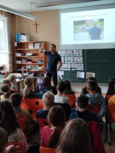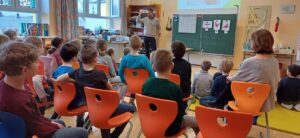 Herr Hörndler fesselte die Kinder mit spannenden Lesungen für die Grundstufe 1 und 2. Bei einem kleinen Quiz konnten die SchülerInnen sogar ein Buch gewinnen.
