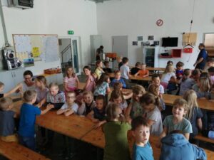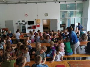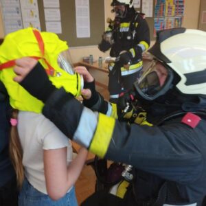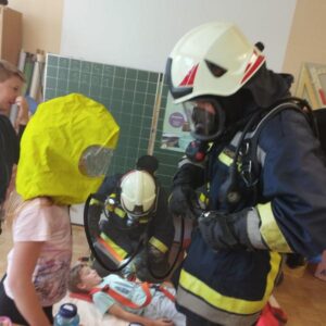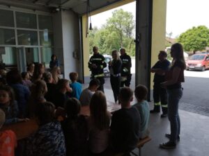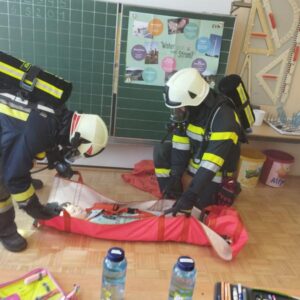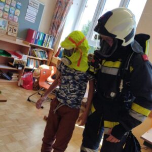 Ende Mai fand eine große Räumungsübung mit den 3 Gemeindefeuerwehren aus Haidershofen statt. Die Schüler der 4. Klasse konnten aufgrund der künstlich hergestellten Rauchentwicklung die Klasse nicht selbstständig verlassen und mussten einzeln von der Feuerwehr mit Fluchthauben gerettet werden. Am Ende kamen alle sicher bei unserem Sammelplatz an.