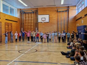 Am letzten Tag vor den Herbstferien fand unsere 1. Schulversammlung statt. Es wurde getanzt, musiziert, gesungen und die Kinder präsentierten stolz die ersten Werkstücke und Zeichnungen.