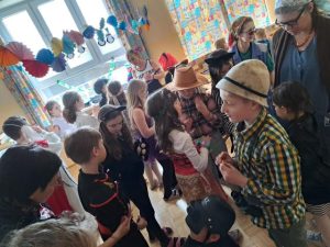 Lustig ging es am Faschingsdienstag in der VS Vestenthal zu. Wir machten einen Umzug durch den Ort, tanzten am Ortsplatz und spielten lustige Spiele. In der Pause verwöhnten uns die „älteren Damen“ vom Elternverein mit leckeren Krapfen. Vielen Dank dafür!