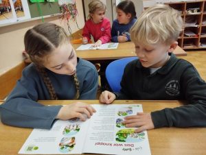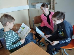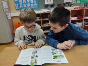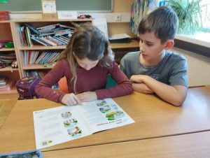 Wie ein Lesetandem funktioniert, probierten die Patenkinder der 2. und 4. Klasse aus. Dabei unterstützt ein „Trainier“ den „Sportler“ beim Lesetraining.