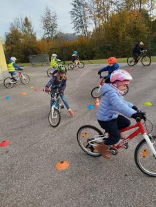 Wie jedes Jahr war der Radworkshop ein voller Erfolg. Die Kinder waren begeistert dabei und übten das richtige Bremsen, Wegfahren und einhändige Fahren. Die Viertklässler fuhren schon einmal die Prüfungsstrecke für die Radfahrprüfung ab.