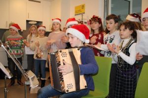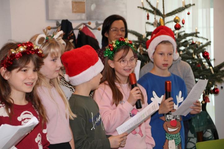 Eine besondere Freude machten die Kinder der 4. Klasse den Bewohnern des „Begleiteten Wohnens“ in Vestenthal. Mit Liedern, kurzen Geschichten und Instrumentalstücken gestalteten sie eine kleine Adventfeier. Es war für alle eine sehr stimmungsvolle und gemütliche Feier.