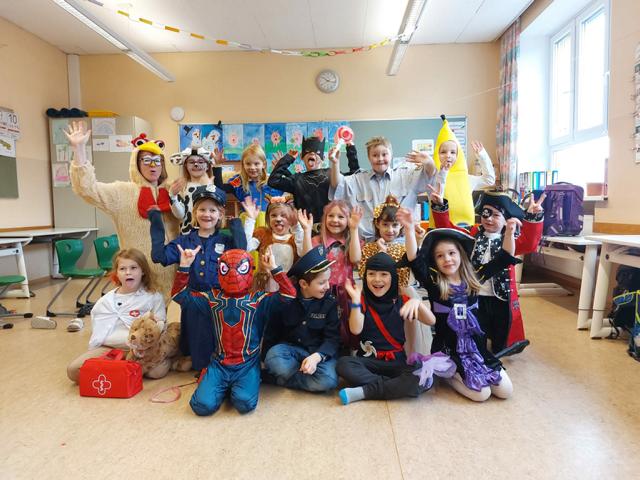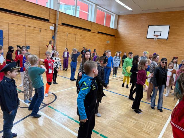 Auch vor unserer Schule machte der Fasching nicht halt. Mit Musik, einer Polonaise durch den Kindergarten und den Ort und Tänzen im Turnsaal feierten wir gemeinsam den Fasching. In der Pause verwöhnte uns der Elternverein mit leckeren Krapfen. Vielen Dank für die Spende! So einen Schultag würden sich die Kinder öfter wünschen.
