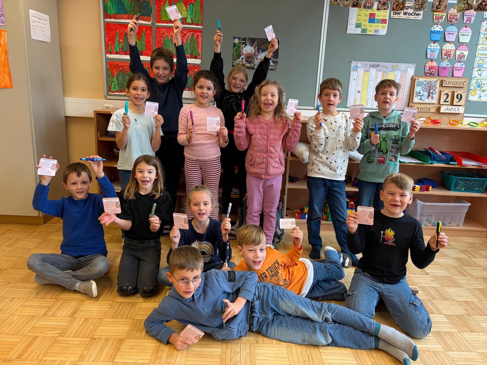Endlich ist es so weit! Die Kinder der 2. Klasse haben den Führerschein für die Füllfeder bestanden. Die Freude war bei allen riesengroß.