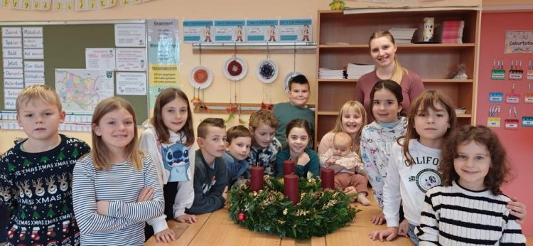 Adventkranz binden Die Adventzeit ist immer eine besondere Zeit für die Kinder. Natürlich darf dazu auch ein selbstgemachter Adventkranz nicht fehlen. Gemeinsam mit Frau Polanski schmückten die Kinder der 1.…