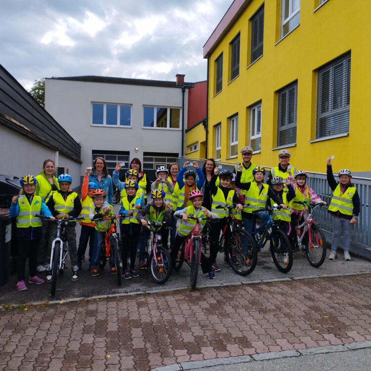 Fahrradprüfung Am 10. Oktober bestanden alle Kinder der 4. Klasse die Radfahrprüfung. Die Freude ist riesig!